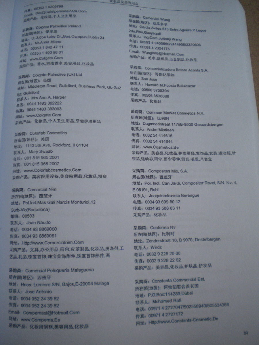 資料如何收集:在各大展會(huì)上,我們免費(fèi)向到會(huì)采購商提供他們需要的最新產(chǎn)品雜志和光盤,我們也同時(shí)向他們派發(fā)帶有我們網(wǎng)站LOGO的精美禮品,這些最新的中國供應(yīng)商的信息,對(duì)他們很有幫助,采購商會(huì)留下他們的名片,填寫詳細(xì)的產(chǎn)品求購信息,以期望得到更多的供應(yīng)商的信息。收集到這些第一手的原始外商資料后,我們客戶服務(wù)中心立刻將名片掃描作成圖片,將產(chǎn)品采購信息做成數(shù)據(jù)庫,將采購商資料按行業(yè)不同,匯編成冊(cè),出版發(fā)行《全球采購商黃頁》系列。