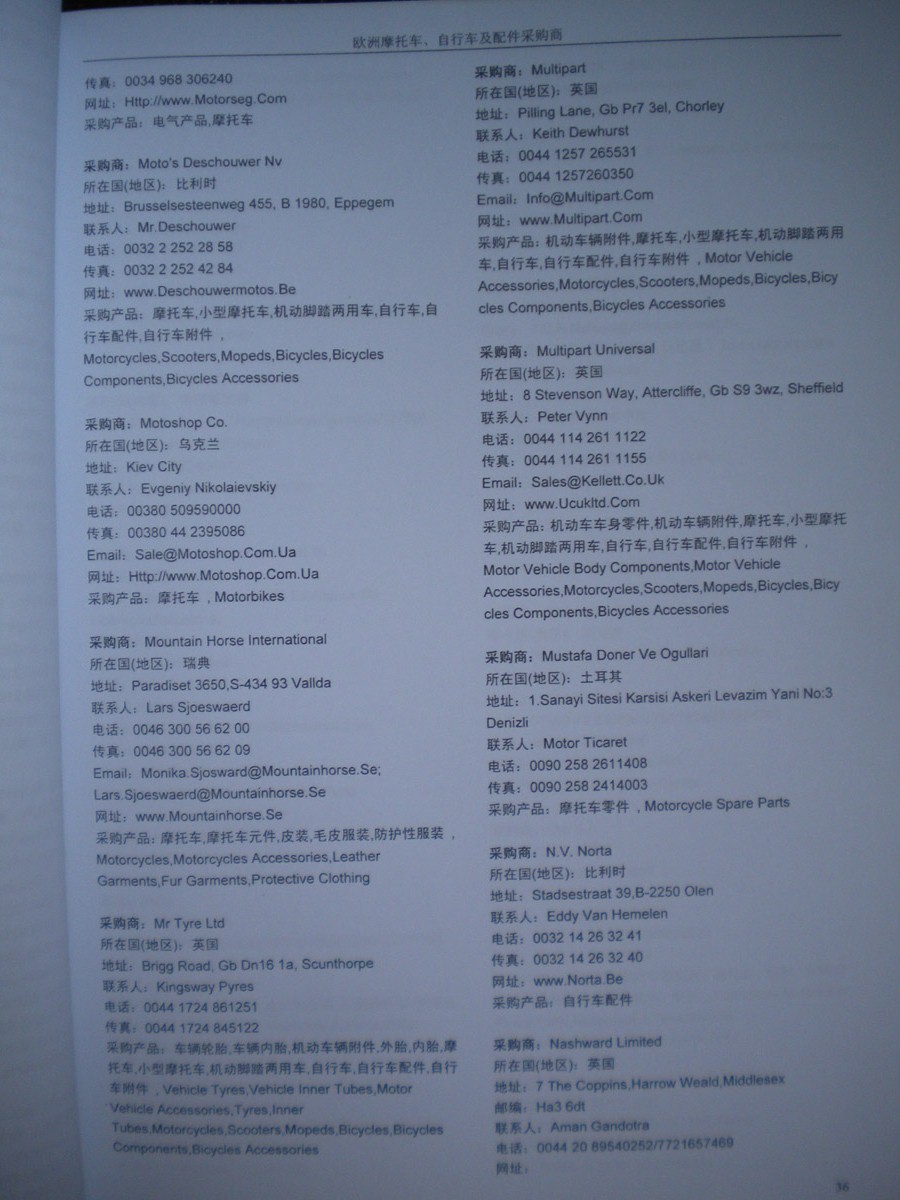 全球摩托車(chē)、自行車(chē)及配件采購(gòu)商(書(shū)刊)共一冊(cè)原價(jià)580元/冊(cè),價(jià)格:350元