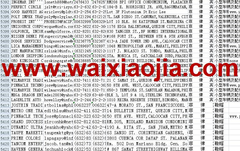 菲律賓采購商名單數(shù)據(jù)為Excel格式,信息可任意修改、復(fù)制、打印、導(dǎo)出及導(dǎo)入到傳真、郵件群發(fā)等軟件中,無任何限制。