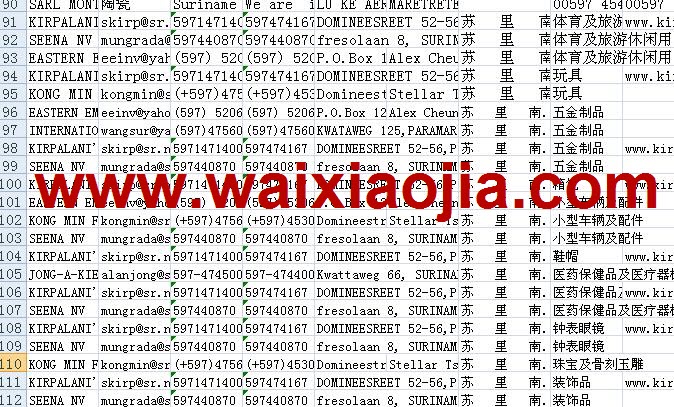 蘇里南采購(gòu)商名單數(shù)據(jù)為Excel格式,信息可任意修改、復(fù)制、打印、導(dǎo)出及導(dǎo)入到傳真、郵件群發(fā)等軟件中,無(wú)任何限制。