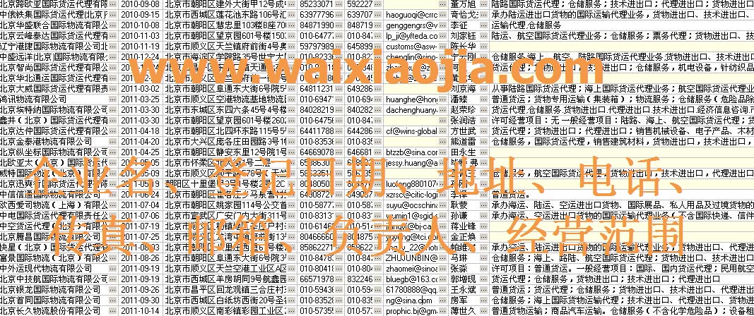 北京貨運代理公司名單數(shù)據(jù)為Excel格式,信息可任意修改、復制、打印、導出及導入到傳真、郵件群發(fā)等軟件中,無任何限制。