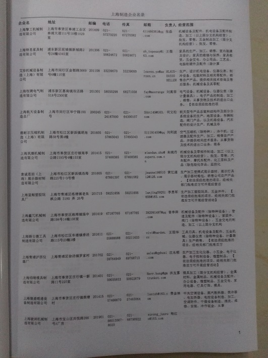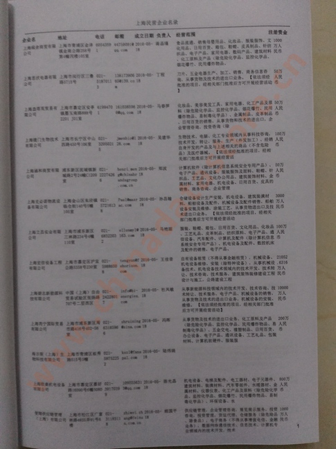 2021版最新上海企業(yè)黃頁(yè)包括《上海制造企業(yè)黃頁(yè)》、《上海貿(mào)易企業(yè)黃頁(yè)》、《上海民營(yíng)企業(yè)黃頁(yè)》、《上海外資企業(yè)黃頁(yè)》、《上海外貿(mào)企業(yè)黃頁(yè)》共五冊(cè),現(xiàn)優(yōu)惠價(jià):280元/冊(cè)。每?jī)?cè)內(nèi)容包括:?jiǎn)挝幻Q、地址、郵編、電話、傳真、郵箱、經(jīng)營(yíng)范圍等;上海企業(yè)黃頁(yè)涵蓋了近幾年來最新成立的、有一定規(guī)模的企業(yè),具有非常高的營(yíng)銷價(jià)值。有了這套黃頁(yè)開展業(yè)務(wù)也有了針對(duì)性,也省去了盲目去尋找客戶名單而浪費(fèi)的時(shí)間了,工作效率也會(huì)有很大的提高。歡迎需要上海企業(yè)黃頁(yè)的朋友及時(shí)聯(lián)系我們!