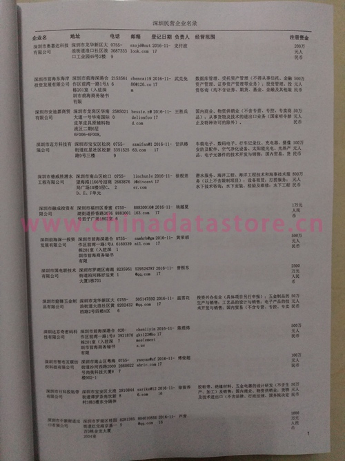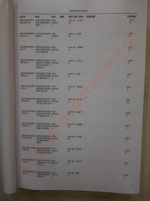 2021版最新深圳企業(yè)黃頁包括《深圳制造企業(yè)黃頁》、《深圳貿(mào)易企業(yè)黃頁》、《深圳民營企業(yè)黃頁》、《深圳外資企業(yè)黃頁》、《深圳外貿(mào)企業(yè)黃頁》共五冊,現(xiàn)優(yōu)惠價(jià):280元/冊。每冊內(nèi)容包括:單位名稱、地址、郵編、電話、傳真、郵箱、經(jīng)營范圍等;深圳企業(yè)黃頁涵蓋了近幾年來最新成立的、有一定規(guī)模的企業(yè),具有非常高的營銷價(jià)值。有了這套黃頁開展業(yè)務(wù)也有了針對性,也省去了盲目去尋找客戶名單而浪費(fèi)的時(shí)間了,工作效率也會有很大的提高。歡迎需要深圳企業(yè)黃頁的朋友及時(shí)聯(lián)系我們!