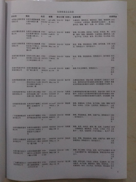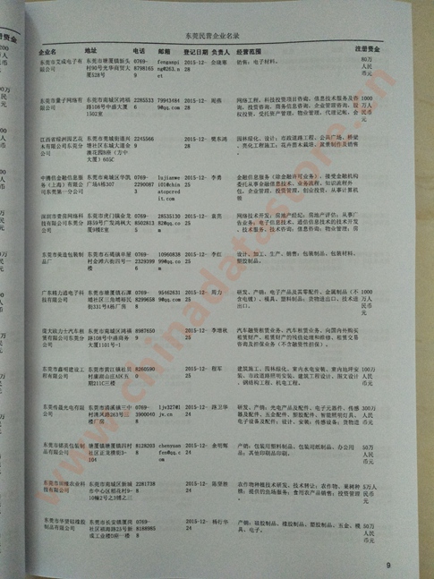 2021版最新東莞企業(yè)黃頁包括《東莞制造企業(yè)黃頁》、《東莞貿(mào)易企業(yè)黃頁》、《東莞民營(yíng)企業(yè)黃頁》、《東莞外資企業(yè)黃頁》、《東莞外貿(mào)企業(yè)黃頁》共五冊(cè),現(xiàn)優(yōu)惠價(jià):280元/冊(cè)。每?jī)?cè)內(nèi)容包括:?jiǎn)挝幻Q、地址、郵編、電話、傳真、郵箱、經(jīng)營(yíng)范圍等;東莞企業(yè)黃頁涵蓋了近幾年來最新成立的、有一定規(guī)模的企業(yè),具有非常高的營(yíng)銷價(jià)值。有了這套黃頁開展業(yè)務(wù)也有了針對(duì)性,也省去了盲目去尋找客戶名單而浪費(fèi)的時(shí)間了,工作效率也會(huì)有很大的提高。歡迎需要東莞企業(yè)黃頁的朋友及時(shí)聯(lián)系我們!