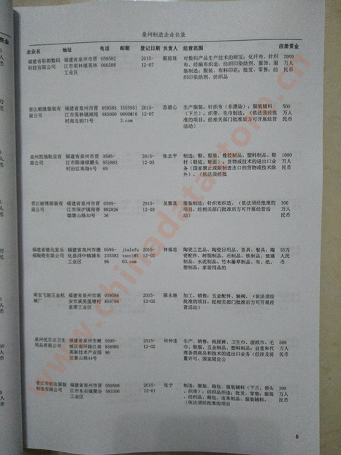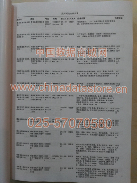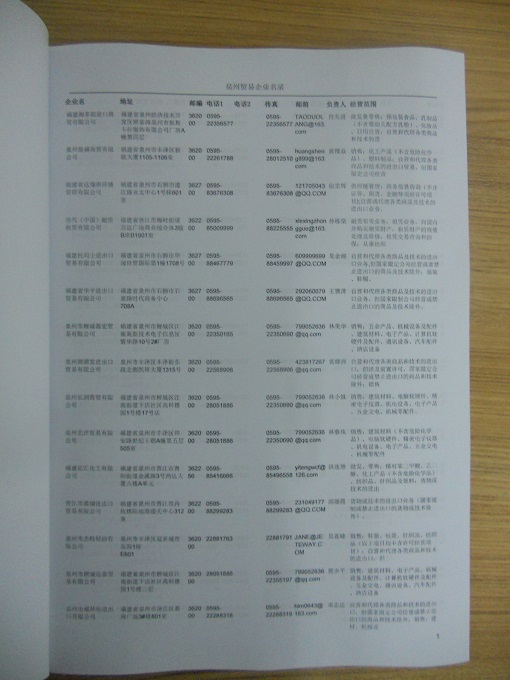 2021版最新泉州企業(yè)黃頁包括《泉州制造企業(yè)黃頁》、《泉州貿(mào)易企業(yè)黃頁》、《泉州民營企業(yè)黃頁》、《泉州外資企業(yè)黃頁》、《泉州外貿(mào)企業(yè)黃頁》共五冊,現(xiàn)優(yōu)惠價(jià):280元/冊。每冊內(nèi)容包括:單位名稱、地址、郵編、電話、傳真、郵箱、經(jīng)營范圍等;泉州企業(yè)黃頁涵蓋了近幾年來最新成立的、有一定規(guī)模的企業(yè),具有非常高的營銷價(jià)值。有了這套黃頁開展業(yè)務(wù)也有了針對性,也省去了盲目去尋找客戶名單而浪費(fèi)的時間了,工作效率也會有很大的提高。歡迎需要泉州企業(yè)黃頁的朋友及時聯(lián)系我們!
