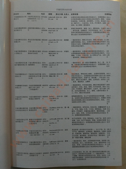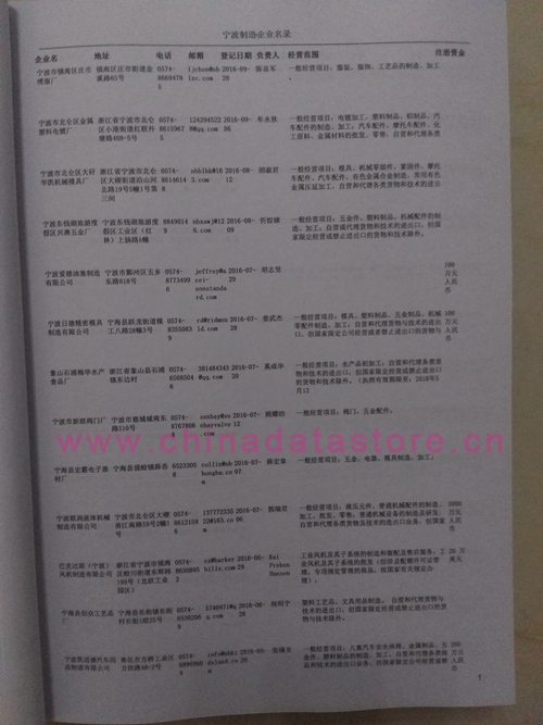 2021版最新寧波企業(yè)黃頁(yè)包括《寧波制造企業(yè)黃頁(yè)》、《寧波貿(mào)易企業(yè)黃頁(yè)》、《寧波民營(yíng)企業(yè)黃頁(yè)》、《寧波外資企業(yè)黃頁(yè)》、《寧波外貿(mào)企業(yè)黃頁(yè)》共五冊(cè),現(xiàn)優(yōu)惠價(jià):280元/冊(cè)。每?jī)?cè)內(nèi)容包括:?jiǎn)挝幻Q(chēng)、地址、郵編、電話、傳真、郵箱、經(jīng)營(yíng)范圍等;寧波企業(yè)黃頁(yè)涵蓋了近幾年來(lái)最新成立的、有一定規(guī)模的企業(yè),具有非常高的營(yíng)銷(xiāo)價(jià)值。有了這套黃頁(yè)開(kāi)展業(yè)務(wù)也有了針對(duì)性,也省去了盲目去尋找客戶(hù)名單而浪費(fèi)的時(shí)間了,工作效率也會(huì)有很大的提高。歡迎需要寧波企業(yè)黃頁(yè)的朋友及時(shí)聯(lián)系我們!
