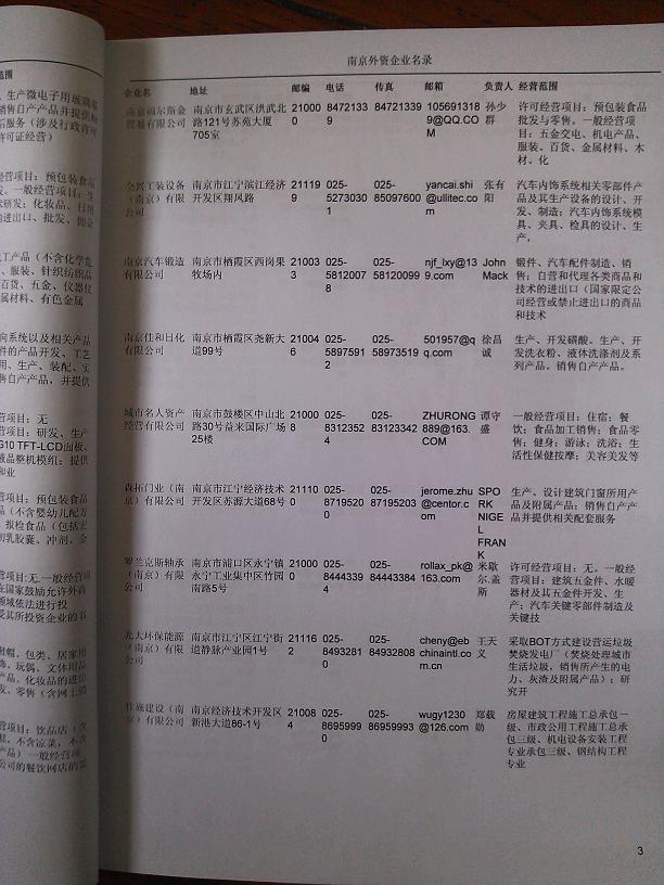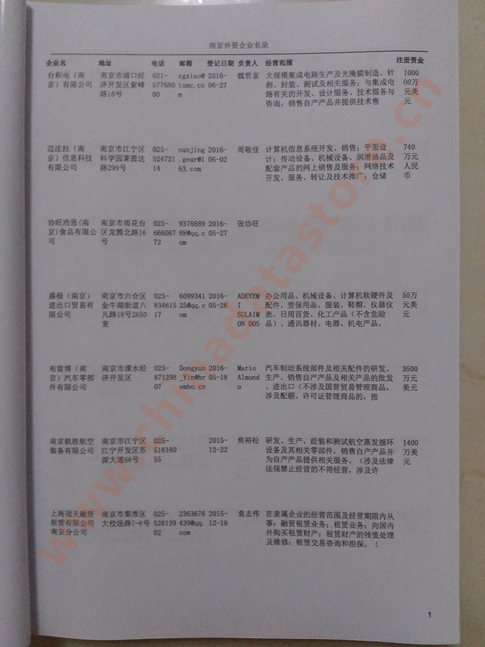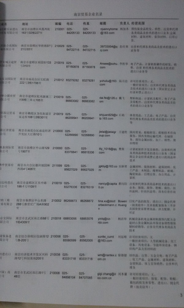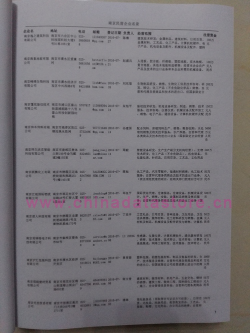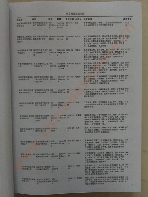 2021版最新南京企業(yè)黃頁包括《南京制造企業(yè)黃頁》、《南京貿(mào)易企業(yè)黃頁》、《南京民營企業(yè)黃頁》、《南京外資企業(yè)黃頁》、《南京外貿(mào)企業(yè)黃頁》共五冊,現(xiàn)優(yōu)惠價:280元/冊。每冊內(nèi)容包括:單位名稱、地址、郵編、電話、傳真、郵箱、經(jīng)營范圍等;南京企業(yè)黃頁涵蓋了近幾年來最新成立的、有一定規(guī)模的企業(yè),具有非常高的營銷價值。有了這套黃頁開展業(yè)務(wù)也有了針對性,也省去了盲目去尋找客戶名單而浪費的時間了,工作效率也會有很大的提高。歡迎需要南京企業(yè)黃頁的朋友及時聯(lián)系我們!