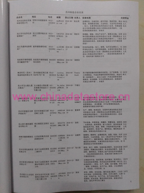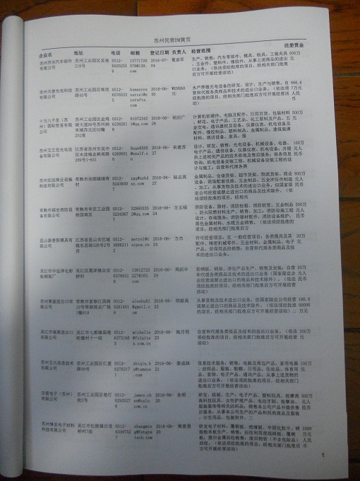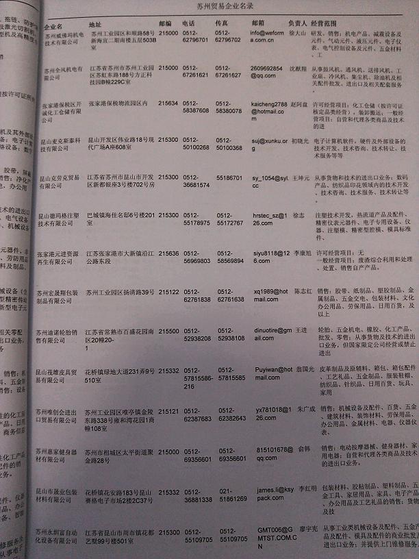 2021版最新蘇州企業(yè)黃頁包括《蘇州制造企業(yè)黃頁》、《蘇州貿(mào)易企業(yè)黃頁》、《蘇州民營企業(yè)黃頁》、《蘇州外資企業(yè)黃頁》、《蘇州外貿(mào)企業(yè)黃頁》共五冊,現(xiàn)優(yōu)惠價:280元/冊。每冊內(nèi)容包括:單位名稱、地址、郵編、電話、傳真、郵箱、經(jīng)營范圍等;蘇州企業(yè)黃頁涵蓋了近幾年來最新成立的、有一定規(guī)模的企業(yè),具有非常高的營銷價值。有了這套黃頁開展業(yè)務(wù)也有了針對性,也省去了盲目去尋找客戶名單而浪費的時間了,工作效率也會有很大的提高。歡迎需要蘇州企業(yè)黃頁的朋友及時聯(lián)系我們!