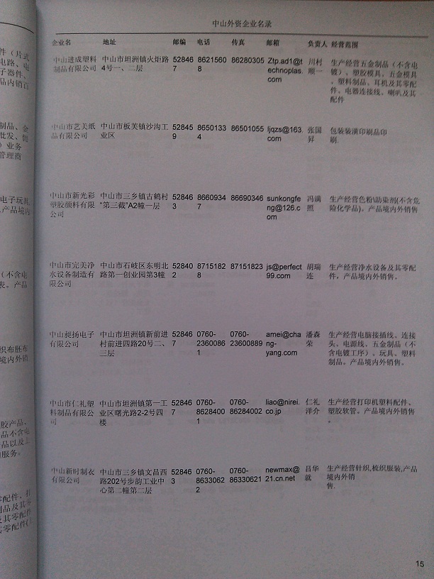 2021版最新中山企業(yè)黃頁包括《中山制造企業(yè)黃頁》、《中山貿(mào)易企業(yè)黃頁》、《中山民營企業(yè)黃頁》、《中山外資企業(yè)黃頁》、《中山外貿(mào)企業(yè)黃頁》共五冊,現(xiàn)優(yōu)惠價:280元/冊。每冊內(nèi)容包括:單位名稱、地址、郵編、電話、傳真、郵箱、經(jīng)營范圍等;中山企業(yè)黃頁涵蓋了近幾年來最新成立的、有一定規(guī)模的企業(yè),具有非常高的營銷價值。有了這套黃頁開展業(yè)務(wù)也有了針對性,也省去了盲目去尋找客戶名單而浪費的時間了,工作效率也會有很大的提高。歡迎需要中山企業(yè)黃頁的朋友及時聯(lián)系我們!