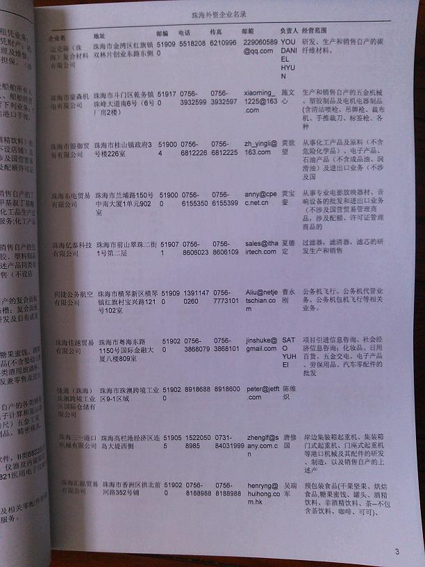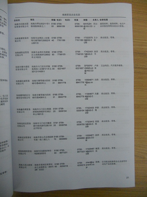 2021版最新珠海企業(yè)黃頁包括《珠海制造企業(yè)黃頁》、《珠海貿(mào)易企業(yè)黃頁》、《珠海民營企業(yè)黃頁》、《珠海外資企業(yè)黃頁》、《珠海外貿(mào)企業(yè)黃頁》共五冊,現(xiàn)優(yōu)惠價:280元/冊。每冊內(nèi)容包括:單位名稱、地址、郵編、電話、傳真、郵箱、經(jīng)營范圍等;珠海企業(yè)黃頁涵蓋了近幾年來最新成立的、有一定規(guī)模的企業(yè),具有非常高的營銷價值。有了這套黃頁開展業(yè)務(wù)也有了針對性,也省去了盲目去尋找客戶名單而浪費的時間了,工作效率也會有很大的提高。歡迎需要珠海企業(yè)黃頁的朋友及時聯(lián)系我們!