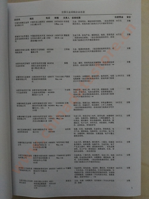 2024年新版中國(guó)五金采購(gòu)企業(yè)黃頁(yè),收錄了全國(guó)各地經(jīng)營(yíng)范圍涉及五金產(chǎn)品的貿(mào)易企業(yè),這些都是頗具實(shí)力的五金產(chǎn)品的中國(guó)采購(gòu)商。黃頁(yè)內(nèi)容包含:企業(yè)名稱、地址、電話、傳真、郵箱、經(jīng)營(yíng)范圍、省份、注冊(cè)資金等信息。該套黃頁(yè)包含一個(gè)黃頁(yè)光碟加一冊(cè)紙質(zhì)書(shū)刊,全國(guó)價(jià)格:1500元,省/直轄市價(jià)格:400元,城市價(jià)格:200元,共收錄了全國(guó)各地大概29596(統(tǒng)計(jì)日期:2018.1)家五金產(chǎn)品采購(gòu)企業(yè)。黃頁(yè)光碟中是EXCEL格式,信息可任意修改、復(fù)制、打印、導(dǎo)出及導(dǎo)入到傳真、郵件群發(fā)等軟件中,無(wú)任何限制。