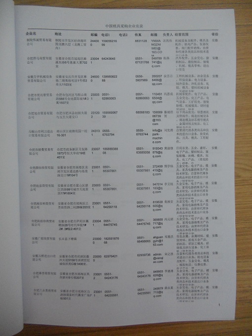 2024年新版中國(guó)模具采購(gòu)企業(yè)黃頁(yè),收錄了全國(guó)各地經(jīng)營(yíng)范圍涉及模具產(chǎn)品的貿(mào)易企業(yè),這些都是頗具實(shí)力的模具產(chǎn)品的中國(guó)采購(gòu)商。黃頁(yè)內(nèi)容包含:企業(yè)名稱、地址、電話、傳真、郵箱、經(jīng)營(yíng)范圍、省份、注冊(cè)資金等信息。該套黃頁(yè)包含一個(gè)黃頁(yè)光碟加一冊(cè)紙質(zhì)書(shū)刊價(jià)格是1500元,省/直轄市價(jià)格:400元,城市價(jià)格:200元,共收錄了全國(guó)各地大概19123(統(tǒng)計(jì)日期:2018.1)家模具產(chǎn)品采購(gòu)企業(yè)。黃頁(yè)光碟中是EXCEL格式,信息可任意修改、復(fù)制、打印、導(dǎo)出及導(dǎo)入到傳真、郵件群發(fā)等軟件中,無(wú)任何限制。