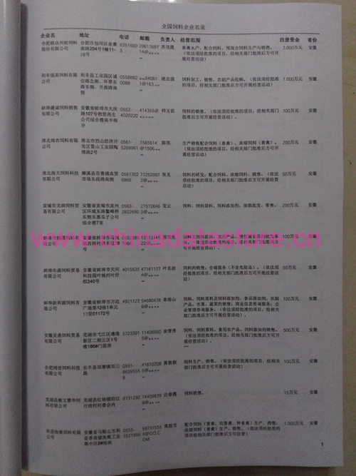 中國飼料企業(yè)名錄