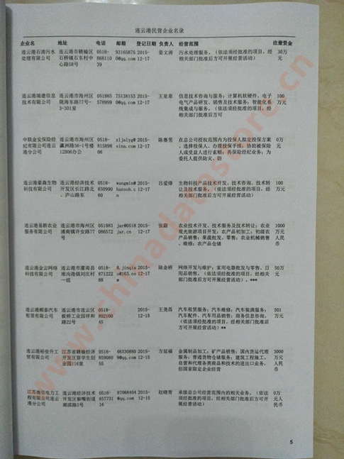 2021版最新連云港企業(yè)黃頁包括《連云港制造企業(yè)黃頁》、《連云港民營企業(yè)黃頁》,現(xiàn)優(yōu)惠價:280元/冊。每冊內容包括:單位名稱、地址、郵編、電話、傳真、郵箱、經營范圍等;連云港企業(yè)黃頁涵蓋了近幾年來最新成立的、有一定規(guī)模的企業(yè),具有非常高的營銷價值。有了這套黃頁開展業(yè)務也有了針對性,也省去了盲目去尋找客戶名單而浪費的時間了,工作效率也會有很大的提高。歡迎需要連云港企業(yè)黃頁的朋友及時聯(lián)系我們!