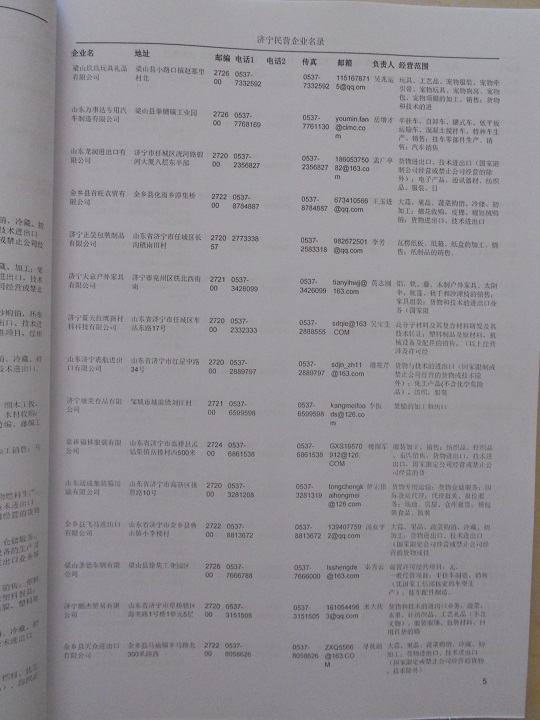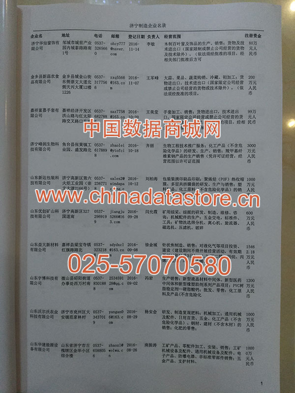2021版最新濟(jì)寧企業(yè)黃頁包括《濟(jì)寧制造企業(yè)黃頁》、《濟(jì)寧民營企業(yè)黃頁》,現(xiàn)優(yōu)惠價(jià):280元/冊。每冊內(nèi)容包括:單位名稱、地址、郵編、電話、傳真、郵箱、經(jīng)營范圍等;濟(jì)寧企業(yè)黃頁涵蓋了近幾年來最新成立的、有一定規(guī)模的企業(yè),具有非常高的營銷價(jià)值。有了這套黃頁開展業(yè)務(wù)也有了針對性,也省去了盲目去尋找客戶名單而浪費(fèi)的時(shí)間了,工作效率也會有很大的提高。歡迎需要濟(jì)寧企業(yè)黃頁的朋友及時(shí)聯(lián)系我們!