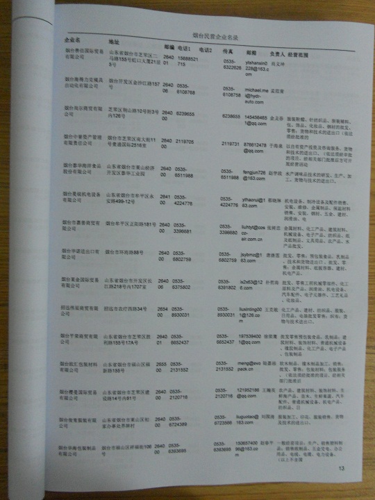 2021版最新煙臺(tái)企業(yè)黃頁包括《煙臺(tái)制造企業(yè)黃頁》、《煙臺(tái)民營企業(yè)黃頁》,現(xiàn)優(yōu)惠價(jià):280元/冊。每冊內(nèi)容包括:單位名稱、地址、郵編、電話、傳真、郵箱、經(jīng)營范圍等;煙臺(tái)企業(yè)黃頁涵蓋了近幾年來最新成立的、有一定規(guī)模的企業(yè),具有非常高的營銷價(jià)值。有了這套黃頁開展業(yè)務(wù)也有了針對(duì)性,也省去了盲目去尋找客戶名單而浪費(fèi)的時(shí)間了,工作效率也會(huì)有很大的提高。歡迎需要煙臺(tái)企業(yè)黃頁的朋友及時(shí)聯(lián)系我們!