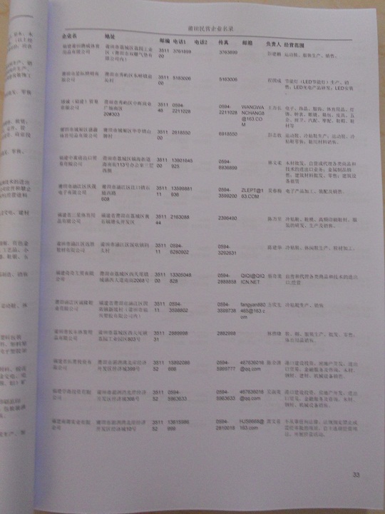 2021版最新莆田企業(yè)黃頁包括《莆田制造企業(yè)黃頁》、《莆田民營企業(yè)黃頁》,現(xiàn)優(yōu)惠價:280元/冊。每冊內(nèi)容包括:單位名稱、地址、郵編、電話、傳真、郵箱、經(jīng)營范圍等;莆田企業(yè)黃頁涵蓋了近幾年來最新成立的、有一定規(guī)模的企業(yè),具有非常高的營銷價值。有了這套黃頁開展業(yè)務(wù)也有了針對性,也省去了盲目去尋找客戶名單而浪費的時間了,工作效率也會有很大的提高。歡迎需要莆田企業(yè)黃頁的朋友及時聯(lián)系我們!