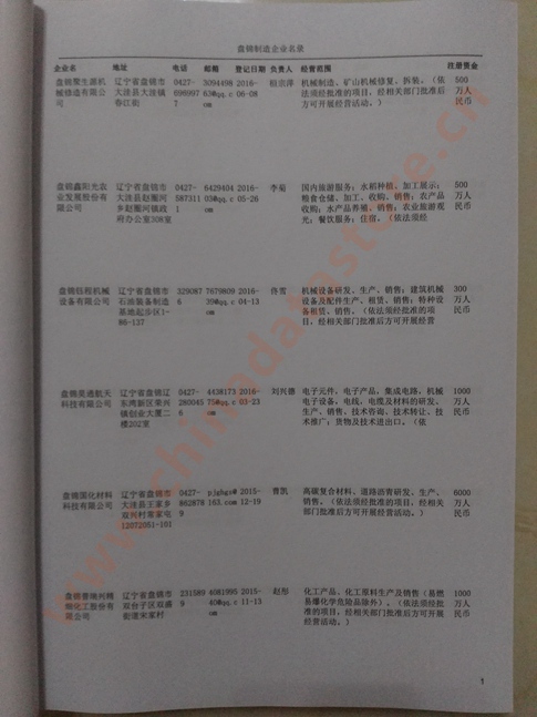 2021版最新盤錦企業(yè)黃頁(yè)包括《盤錦制造企業(yè)黃頁(yè)》、《盤錦民營(yíng)企業(yè)黃頁(yè)》,現(xiàn)優(yōu)惠價(jià):280元/冊(cè)。每?jī)?cè)內(nèi)容包括:?jiǎn)挝幻Q、地址、郵編、電話、傳真、郵箱、經(jīng)營(yíng)范圍等;盤錦企業(yè)黃頁(yè)涵蓋了近幾年來(lái)最新成立的、有一定規(guī)模的企業(yè),具有非常高的營(yíng)銷價(jià)值。有了這套黃頁(yè)開(kāi)展業(yè)務(wù)也有了針對(duì)性,也省去了盲目去尋找客戶名單而浪費(fèi)的時(shí)間了,工作效率也會(huì)有很大的提高。歡迎需要盤錦企業(yè)黃頁(yè)的朋友及時(shí)聯(lián)系我們!