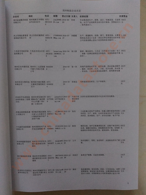 2021版最新鄭州企業(yè)黃頁包括《鄭州制造企業(yè)黃頁》、《鄭州民營企業(yè)黃頁》,現(xiàn)優(yōu)惠價(jià):280元/冊。每冊內(nèi)容包括:單位名稱、地址、郵編、電話、傳真、郵箱、經(jīng)營范圍等;鄭州企業(yè)黃頁涵蓋了近幾年來最新成立的、有一定規(guī)模的企業(yè),具有非常高的營銷價(jià)值。有了這套黃頁開展業(yè)務(wù)也有了針對性,也省去了盲目去尋找客戶名單而浪費(fèi)的時(shí)間了,工作效率也會(huì)有很大的提高。歡迎需要鄭州企業(yè)黃頁的朋友及時(shí)聯(lián)系我們!