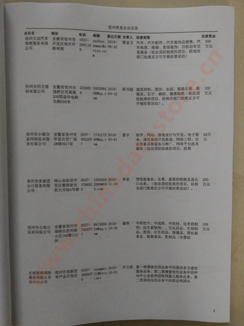 2021版最新宿州企業(yè)黃頁包括《宿州制造企業(yè)黃頁》、《宿州民營企業(yè)黃頁》,現(xiàn)優(yōu)惠價:280元/冊。每冊內容包括:單位名稱、地址、郵編、電話、傳真、郵箱、經營范圍等;宿州企業(yè)黃頁涵蓋了近幾年來最新成立的、有一定規(guī)模的企業(yè),具有非常高的營銷價值。有了這套黃頁開展業(yè)務也有了針對性,也省去了盲目去尋找客戶名單而浪費的時間了,工作效率也會有很大的提高。歡迎需要宿州企業(yè)黃頁的朋友及時聯(lián)系我們!