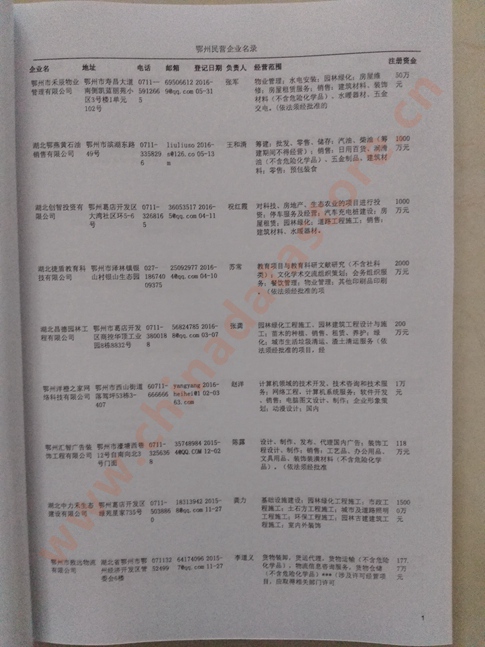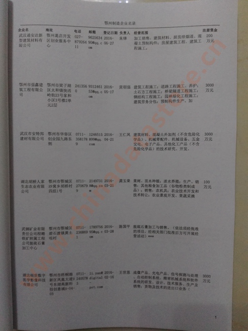 2021版最新鄂州企業(yè)黃頁包括《鄂州制造企業(yè)黃頁》、《鄂州民營企業(yè)黃頁》,現(xiàn)優(yōu)惠價:280元/冊。每冊內(nèi)容包括:單位名稱、地址、郵編、電話、傳真、郵箱、經(jīng)營范圍等;鄂州企業(yè)黃頁涵蓋了近幾年來最新成立的、有一定規(guī)模的企業(yè),具有非常高的營銷價值。有了這套黃頁開展業(yè)務(wù)也有了針對性,也省去了盲目去尋找客戶名單而浪費的時間了,工作效率也會有很大的提高。歡迎需要鄂州企業(yè)黃頁的朋友及時聯(lián)系我們!