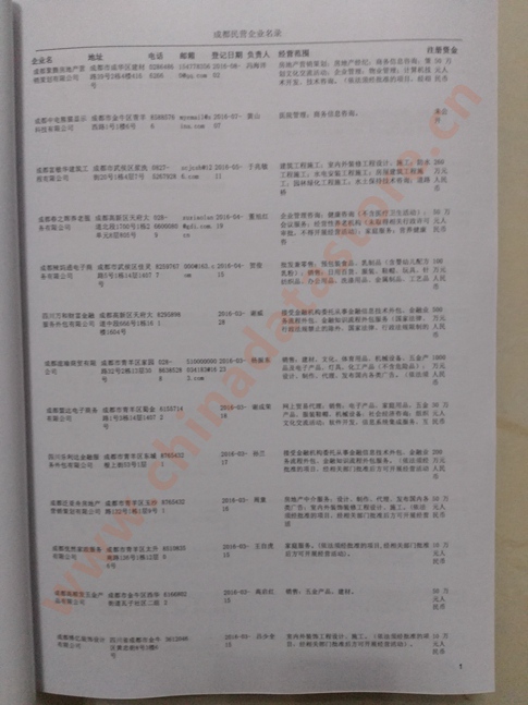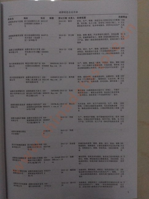 2021版最新成都企業(yè)黃頁包括《成都制造企業(yè)黃頁》、《成都民營企業(yè)黃頁》,現(xiàn)優(yōu)惠價:280元/冊。每冊內(nèi)容包括:單位名稱、地址、郵編、電話、傳真、郵箱、經(jīng)營范圍等;成都企業(yè)黃頁涵蓋了近幾年來最新成立的、有一定規(guī)模的企業(yè),具有非常高的營銷價值。有了這套黃頁開展業(yè)務(wù)也有了針對性,也省去了盲目去尋找客戶名單而浪費的時間了,工作效率也會有很大的提高。歡迎需要成都企業(yè)黃頁的朋友及時聯(lián)系我們!