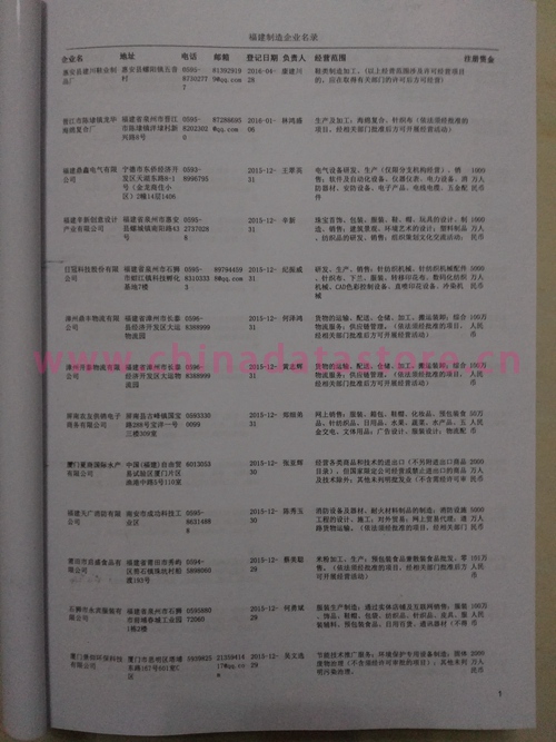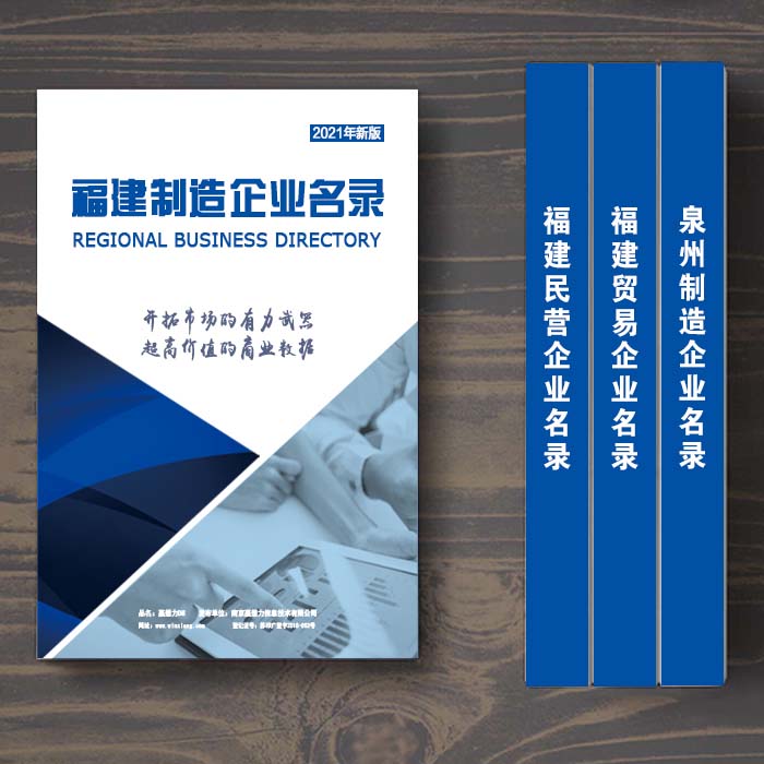 2021版最新福建企業(yè)黃頁包括《福建制造企業(yè)黃頁》、《福建貿(mào)易企業(yè)黃頁》、《福建民營企業(yè)黃頁》共三冊,優(yōu)惠價(jià):280元/冊。每冊內(nèi)容包括:單位名稱、地址、郵編、電話、傳真、郵箱、經(jīng)營范圍等;福建企業(yè)黃頁涵蓋了近幾年來最新成立的、有一定規(guī)模的企業(yè),具有非常高的營銷價(jià)值。有了這套黃頁開展業(yè)務(wù)也有了針對性,也省去了盲目去尋找客戶名單而浪費(fèi)的時(shí)間了,工作效率也會有很大的提高。歡迎需要福建企業(yè)黃頁的朋友及時(shí)聯(lián)系我們!