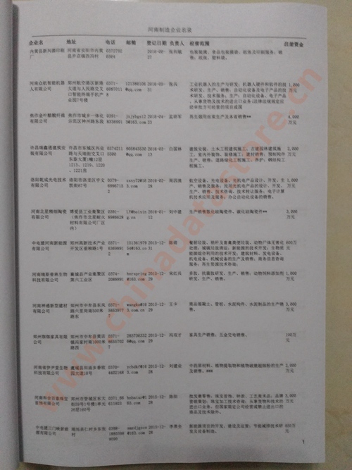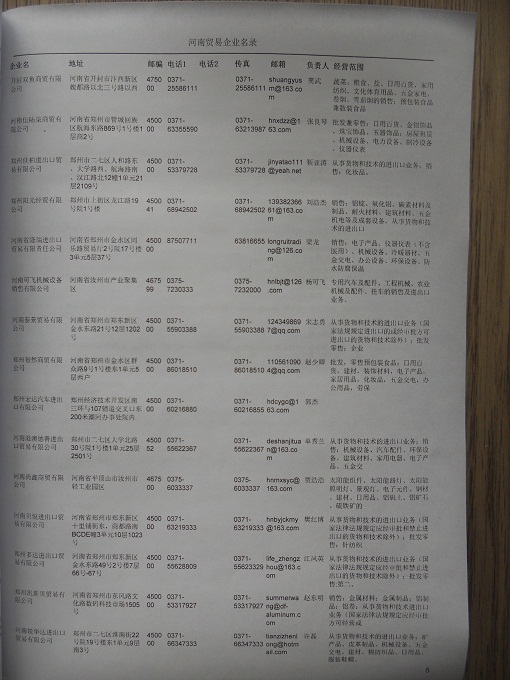 2021版最新河南企業(yè)黃頁包括《河南制造企業(yè)黃頁》、《河南貿(mào)易企業(yè)黃頁》、《河南民營企業(yè)黃頁》共三冊,優(yōu)惠價(jià):280元/冊。每冊內(nèi)容包括:單位名稱、地址、郵編、電話、傳真、郵箱、經(jīng)營范圍等;河南企業(yè)黃頁涵蓋了近幾年來最新成立的、有一定規(guī)模的企業(yè),具有非常高的營銷價(jià)值。有了這套黃頁開展業(yè)務(wù)也有了針對性,也省去了盲目去尋找客戶名單而浪費(fèi)的時(shí)間了,工作效率也會(huì)有很大的提高。歡迎需要河南企業(yè)黃頁的朋友及時(shí)聯(lián)系我們!