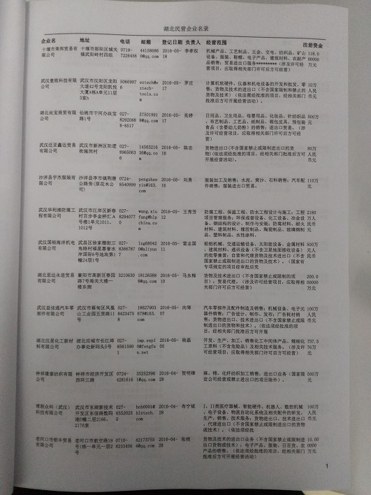 2021版最新湖北企業(yè)黃頁包括《湖北制造企業(yè)黃頁》、《湖北貿(mào)易企業(yè)黃頁》、《湖北民營企業(yè)黃頁》共三冊(cè),優(yōu)惠價(jià):280元/冊(cè)。每冊(cè)內(nèi)容包括:單位名稱、地址、郵編、電話、傳真、郵箱、經(jīng)營范圍等;湖北企業(yè)黃頁涵蓋了近幾年來最新成立的、有一定規(guī)模的企業(yè),具有非常高的營銷價(jià)值。有了這套黃頁開展業(yè)務(wù)也有了針對(duì)性,也省去了盲目去尋找客戶名單而浪費(fèi)的時(shí)間了,工作效率也會(huì)有很大的提高。歡迎需要湖北企業(yè)黃頁的朋友及時(shí)聯(lián)系我們!