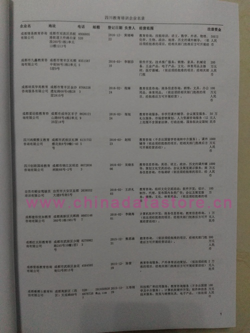 全國(guó)四川教育培訓(xùn)企業(yè)名單助您立刻獲得大量潛在客戶信息,大大減少銷售成本,是您的事業(yè)事半功倍