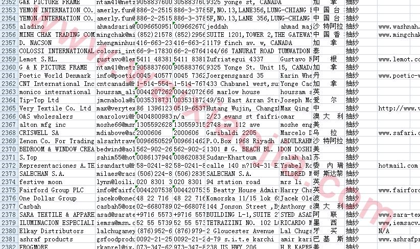 抽紗采購商名單數(shù)據(jù)為Excel格式,信息可任意修改、復制、打印、導出及導入到傳真、郵件群發(fā)等軟件中,無任何限制。