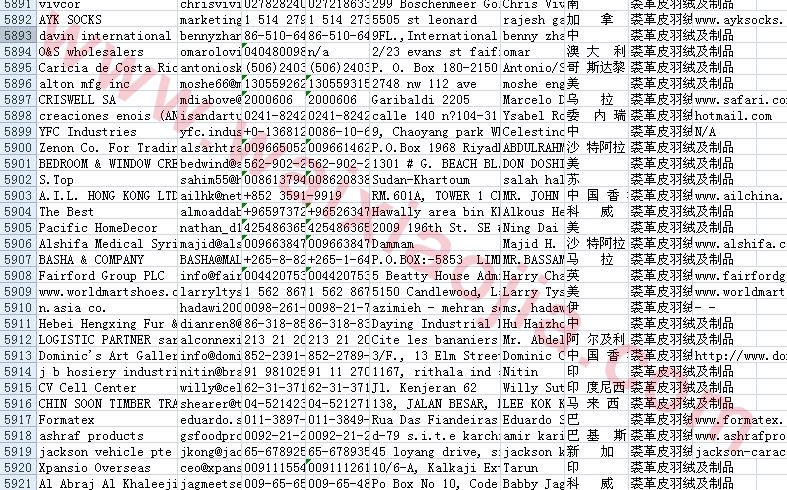 裘皮革羽絨及制品采購商公司黃頁共6000條記錄,價格:600元