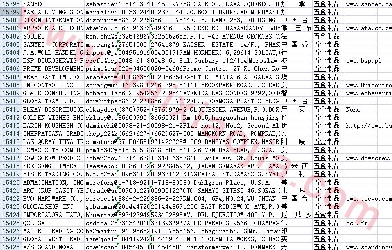 五金制品采購商名單數(shù)據(jù)為Excel格式,信息可任意修改、復(fù)制、打印、導(dǎo)出及導(dǎo)入到傳真、郵件群發(fā)等軟件中,無任何限制。