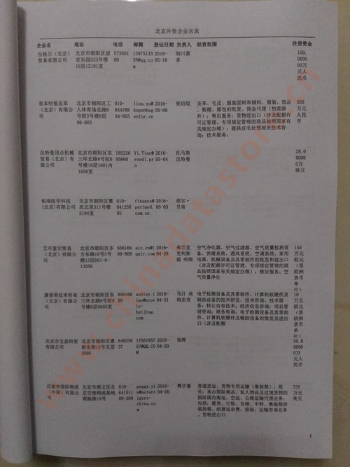 最新北京外資企業(yè)黃頁數(shù)據(jù)涵蓋了北京外商獨資企業(yè)、中外合資經(jīng)營企業(yè)以及港、澳、臺資企業(yè),包括北京臺資日資企業(yè)黃頁等,北京外企名單具體內(nèi)容包括:企業(yè)名稱、地址、電話、傳真、郵箱、經(jīng)營范圍、注冊資金等信息;北京日企臺企黃頁里面的企業(yè)都一些中外合資的大企業(yè),這些公司經(jīng)濟(jì)實力都比較雄厚,出口產(chǎn)品也比較多,業(yè)務(wù)范圍都比較廣,跟他們開展業(yè)務(wù)往來都比較容易;有了北京外企黃頁開展業(yè)務(wù)也有了針對性,也省去了盲目去尋找客戶名單而浪費(fèi)的時間了,工作效率也會有很大的提高.歡迎需要的客戶及時聯(lián)系我們!