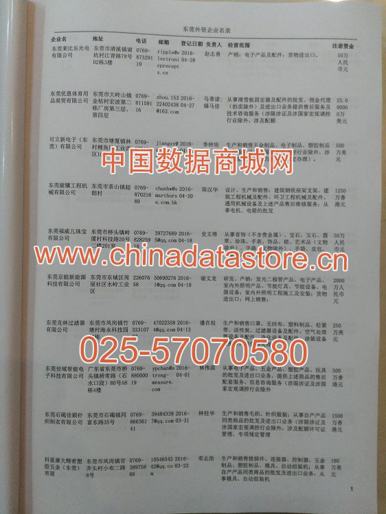 東莞外資企業(yè)黃頁經(jīng)過人工多次整理更新以及去重處理,提供開放的Excel等格式具有開放性特點,可以自由地添加、刪除、更改,導(dǎo)入導(dǎo)出到電腦中保存等操作,還可以輕松打印