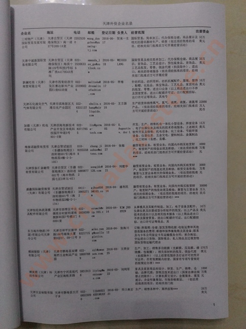 最新天津外資企業(yè)黃頁涵蓋了天津外商獨(dú)資企業(yè)、中外合資經(jīng)營企業(yè)以及港、澳、臺資企業(yè),包括天津臺資日資企業(yè)黃頁,天津外企黃頁具體內(nèi)容包括:企業(yè)名稱、地址、電話、傳真、郵箱、經(jīng)營范圍、注冊資金等信息;天津臺企日企名單里面的企業(yè)都一些中外合資的大企業(yè),這些公司經(jīng)濟(jì)實(shí)力都比較雄厚,出口產(chǎn)品也比較多,業(yè)務(wù)范圍都比較廣,跟他們開展業(yè)務(wù)往來都比較容易;有了天津外資企業(yè)黃頁開展業(yè)務(wù)也有了針對性,也省去了盲目去尋找客戶名單而浪費(fèi)的時(shí)間了,工作效率也會有很大的提高.歡迎需要的客戶及時(shí)聯(lián)系我們!