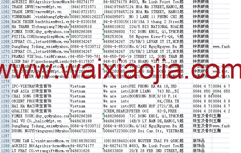 7、定向越南采購商黃頁數(shù)據(jù)按具體產(chǎn)品名稱進行提供, 保證信息的準(zhǔn)確和詳細(xì);