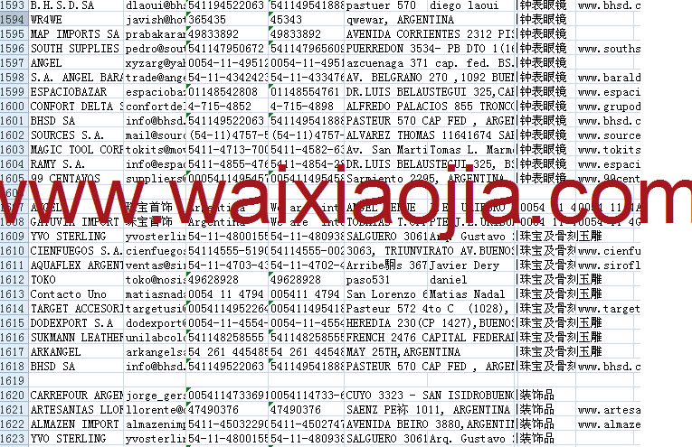 阿根廷采購商名單數(shù)據(jù)為Excel格式,信息可任意修改、復(fù)制、打印、導(dǎo)出及導(dǎo)入到傳真、郵件群發(fā)等軟件中,無任何限制。