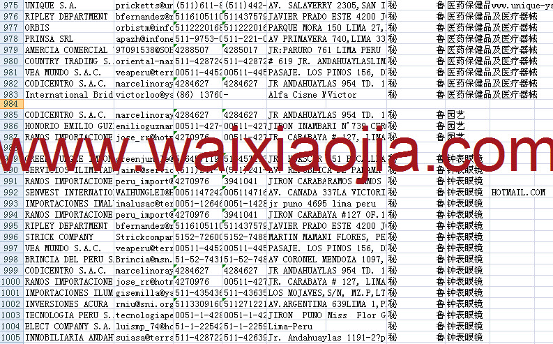 秘魯采購商公司黃頁共1050記錄,價格:300元